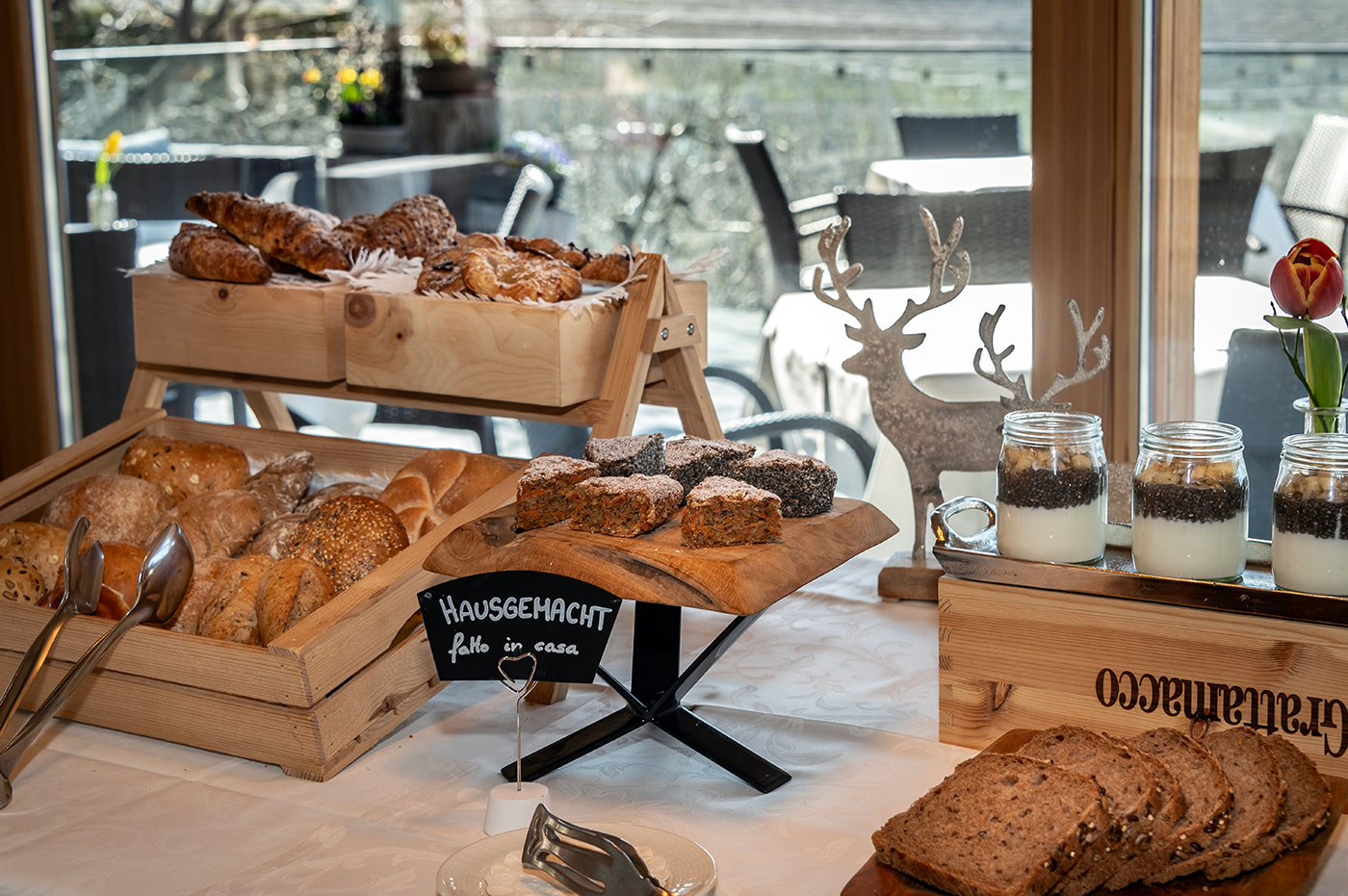 Liebevoll für Sie zubereitet erwartet Sie am Morgen eine bunte Vielfalt am Frühstücksbuffet. Hausgemachte Leckereien, frisch gebackenes Brot und süße Versuchungen laden zum Genießen ein. Dazu ein cremiger Cappuccino, frisch gepresste Säfte und viele kleine Köstlichkeiten für den perfekten Start in den Tag.