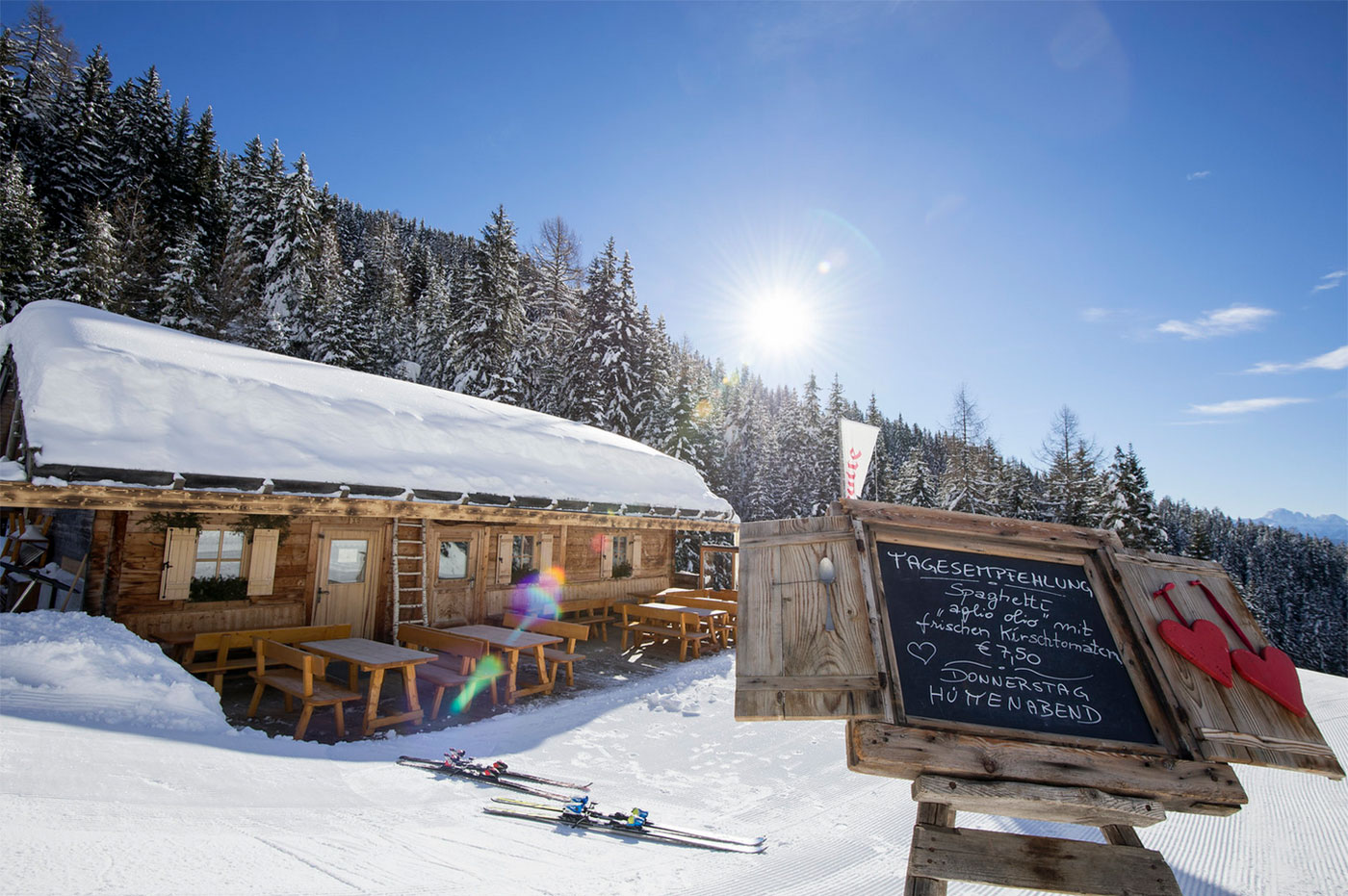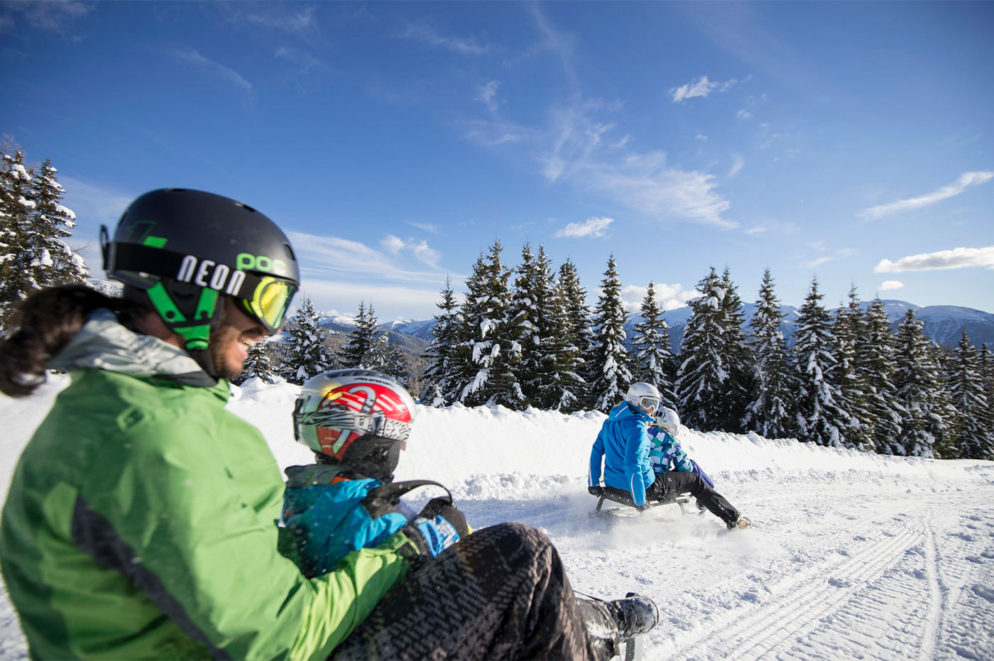 Verschneite Wiesen, stille Wälder und urige Almen wie die Fane Alm oder die weiten Höhen der Rodenecker Alm laden zum Entschleunigen ein. Wer es lebhafter mag, saust auf der RudiRun Rodelbahn der Plose ins Tal – lachend, fröhlich und mitten im Winterglück.